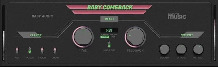 Baby Comeback features a versatile sound that ranges from modern to vintage and lo-fi. With four delay flavors, including "Wide" for a clean, stereo-expanding effect and "Saucey" for lush synth leads, this plugin is your ticket to diverse sonic landscapes. Not to be overlooked is the Duck control, ensuring clear vocals even with added delay. It's the perfect blend of modern functionality and vintage charm in one compact plugin.